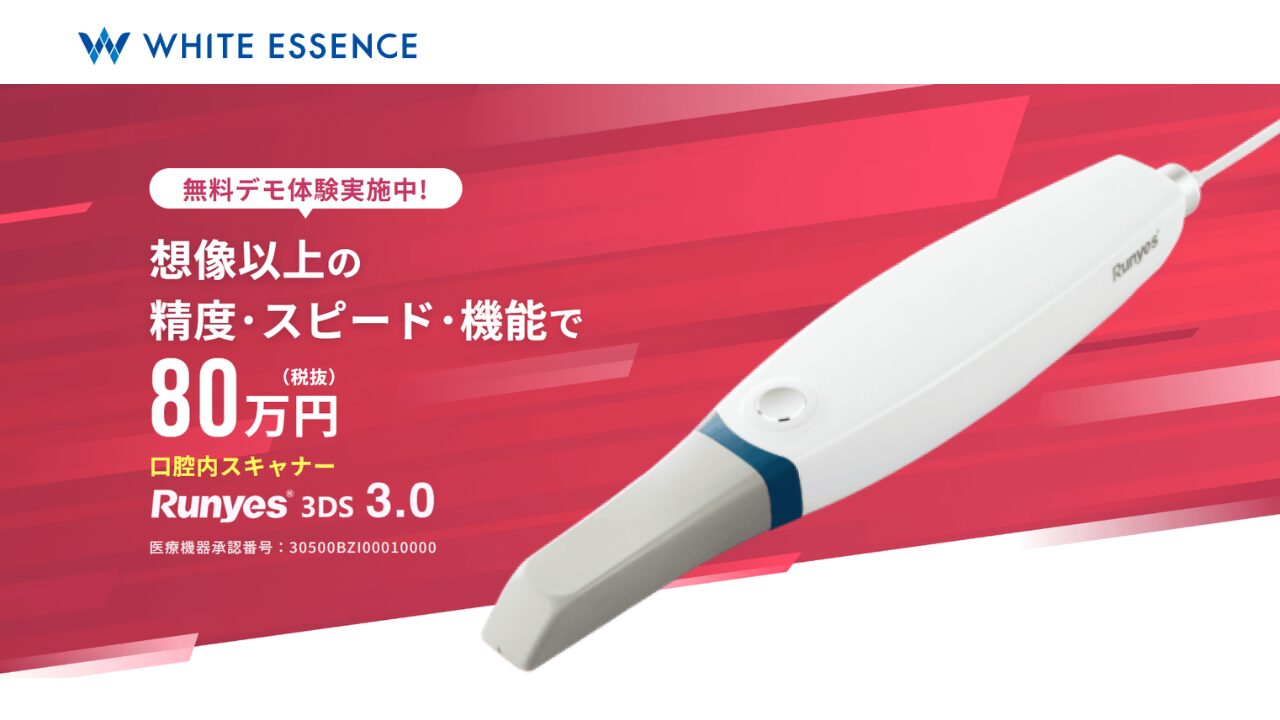 「本当にそんなに速くレポートが出せるのか?」 「AIの診断精度を、自分の目で確かめたい」その疑問、ぜひ先生ご自身の目で確かめてください。 ホワイトエッセンスでは、実際のRunyes機器を医院へお持ちし、診療の合間にお試しいただける無料の院内デモを実施しております。また、初期費用ゼロでリスクなく導入できる「IOSレンタルプラン(定額パック)」も大好評受付中です。 患者様の目の前で「見えない口の中」を可視化する驚きと、自費率が変わる瞬間を、ぜひご体感ください。
