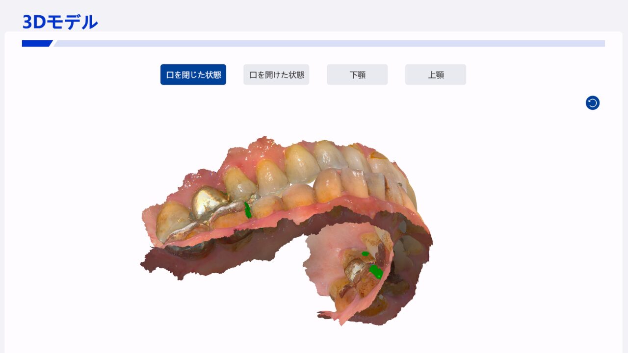 一通り歯列をなぞり終えると、画面上の3Dモデルには所々、色が違う部分があった。