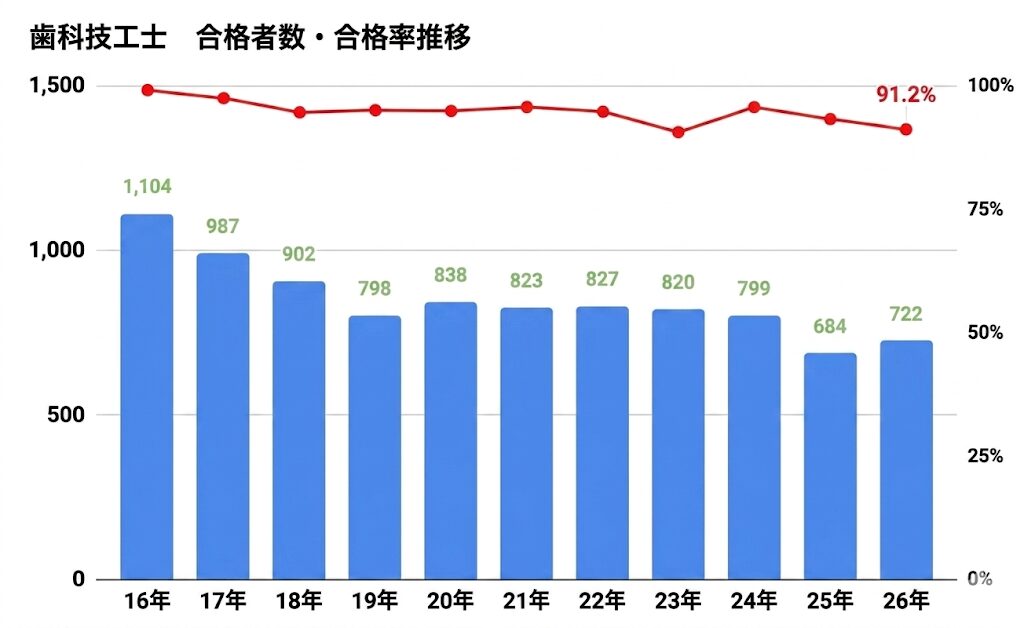 2026年3月26日、厚生労働省より第11回歯科技工士国家試験の結果が発表されました。受験者数792名に対し、合格者数は722人、合格率は91.2%。この数字は、歯科業界がこれまでの供給体制を維持できるかどうかの、大きな分岐点に立っていることを示しています。